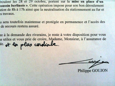 Alors ? suis-je aveugle malvoyant ou observons nous la même chose ? Si la signature est sans doute celle de mon maire préféré (non pas Delanoë, l'autre.. celui de l'arrondissement quoi. Oui à Paris on a deux maires... sauf qu'en l'espère, il y en a un des deux qui n'a rien contre.. celui qui comprendra cette remarque gagne mon estime..), celle osant un subversif "et la plus cordiale" n'est guère ressemblante.